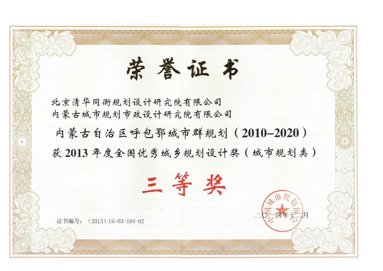 多项荣誉增彩:荣获“全国文明单位”“全国住房城乡建设系统先进集体”“连续7年A级信用纳税人”等称号,百余项设计成果获国家及自治区级奖项。其中《呼包鄂城市群规划》获国家优秀规划设计三等奖,《内蒙古生态修复与城市修补课题研究及导则》获全国优秀城市规划设计表扬奖。